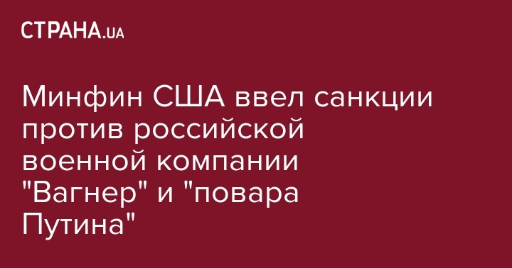 Минфин США ввел санкции против российской военной компании "Вагнер" и "повара Путина"