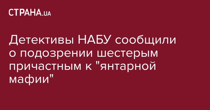 Сегодня детективы Национального антикоррупционного бюро Украины (НАБУ) и прокуроры Специализированной антикоррупционной прокуратуры (САП) сообщили о подозрении шести лицам, причастным к так называемой "янтарной мафии". Об этом НАБУ сообщает на свое странице Facebook.