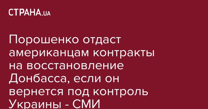 Порошенко отдаст американцам контракты на восстановление Донбасса, если он вернется под контроль Украины - СМИ