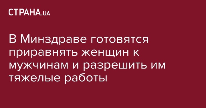 В Минздраве готовятся приравнять женщин к мужчинам и разрешить им тяжелые работы