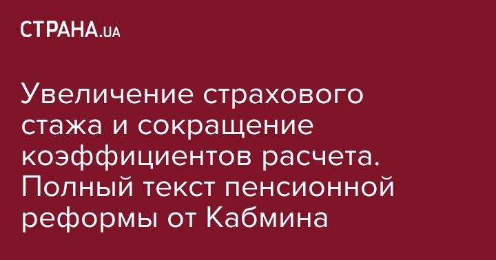 В СМИ появился полный законопроект по пенсионной реформы от Кабмина, которую уже утвердили международные спонсоры Украины. Документ публикуют "Украинские новости".