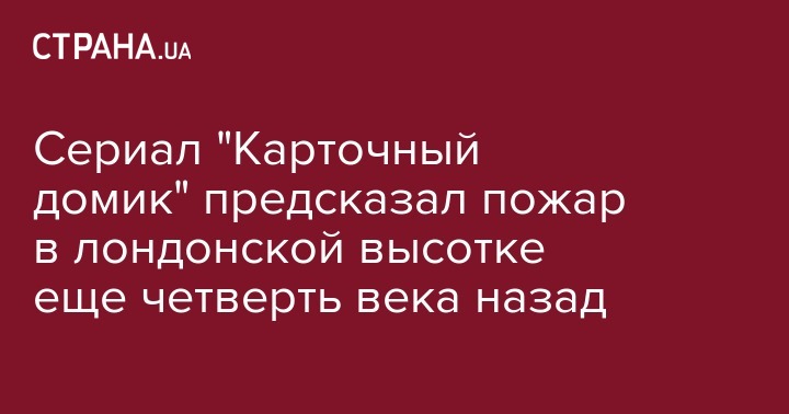 Еще 24 года назад, в эпизоде 1993 года сериала "Карточный домик" рассказывалось о пожаре в лондонской высотке, причем детали истории во многом совпали с настоящим пожаром 2017 года, унесшим жизни 79 человек. Об этом пишет Mashable.