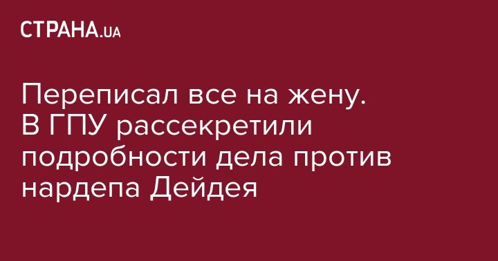 Переписал все на жену. В ГПУ рассекретили подробности дела против нардепа Дейдея