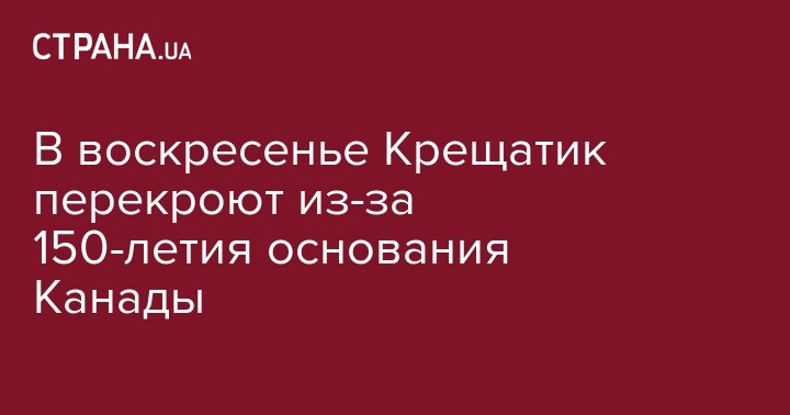 В воскресенье, 25 июня, в Киеве на протяжении всего дня будет запрещено движение всех видов транспорта по улице Крещатик. На главной улице столицы пройдут праздничные мероприятия к 150-летию основания Канады, сообщает пресс-служба КГГА.