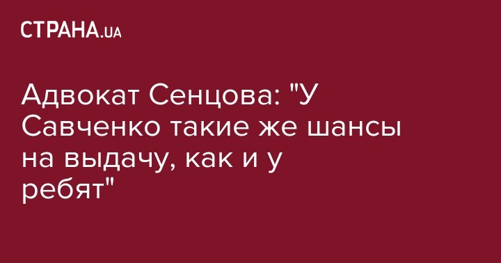 Адвокат Сенцова: "У Савченко такие же шансы на выдачу, как и у ребят"