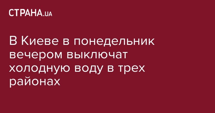 В Киеве в понедельник вечером выключат холодную воду в трех районах