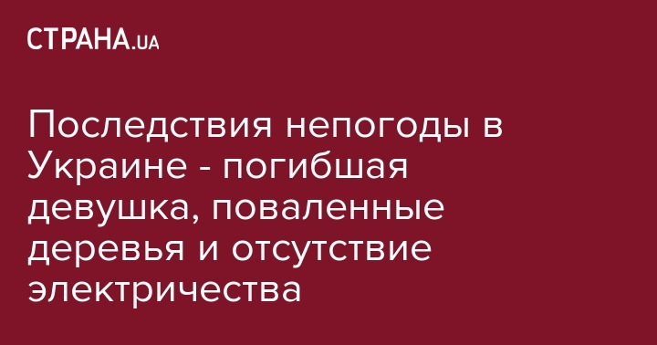 В результате сильного дождя и порывов ветра были повалены 147 деревьев, повреждены 66 кровель жилых домов и 2 объекта социально-бытовой сферы. Под Черкассами погибла девушка.