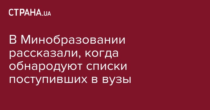 Министр образования и науки Украины Лилия Гриневич назвала дату, когда будут обнародованы списки поступивших в ВУЗы в этом году. Об этом сообщает "112 Украина".