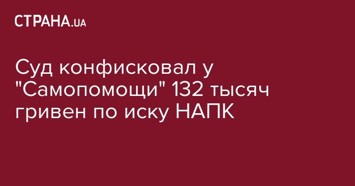 Печерский районный суд Киева принял решение о конфискации почти 132 тыс. грн партийных взносов у партии мэра Львова Андрея Садового "Самопомощь" по материалам НАПК. Об этом в Facebook сообщила глава Агентства Наталья Корчак.