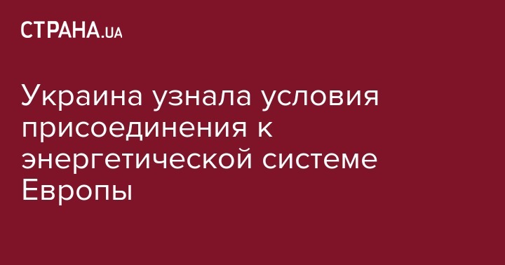 Власти Украины договорились об условиях присоединения к энергетической системе Европы. Об этом сообщает и. о. директора Национальной энергетической компании "Укрэнерго" Всеволод Ковальчук на своей странице в Facebook.
