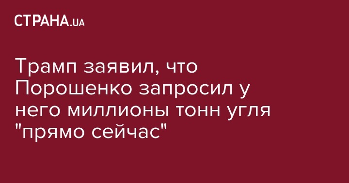 Трамп заявил, что Порошенко запросил у него миллионы тонн угля "прямо сейчас"