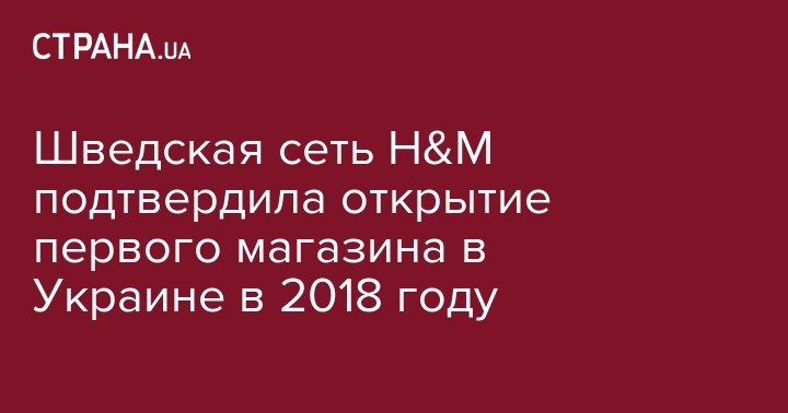 Крупнейшая европейская сеть по продаже одежды- шведская H&M (Hennes & Mauritz) подтвердила выход на украинский рынок в 2018 году. Информация об этом размещена в пресс-релизе компании, посвященном планам ее дальнейшего развития. "Новые рынки, запланированные на 2018 год, - Уругвай и Украина", - сказано в заявлении компании.