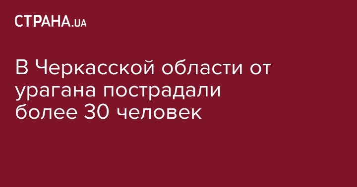 Из-за урагана в Черкасской пострадали 33 человека, из них 11 человек доставлены в больницу. Об этом написал председатель Черкасской ОГА Юрий Ткаченко на своей странице в Facebook .