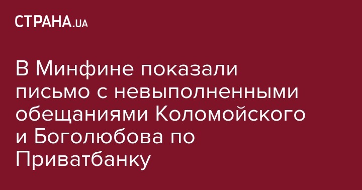 В Минфине обнародовало письмо от 16 декабря 2016 года, в котором бывшие владельцы Приватбанка Игорь Коломойский и Геннадий Боголюбов просят правительство приобрести акции банка и принять положительное решение по его дальнейшей капитализации. В свою очередь они взяли на себя ряд обязательств. Об этом сообщается на сайте Минфина.