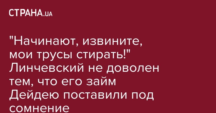 "Да, я тот самый Линчевский, который реально одолжил эти деньги Дейдею. Эти деньги у меня задекларированы во всех налоговых декларациях, с них уплачены все налоги, эти деньги я лично передавал Дейдею", - заявил Линчевский.