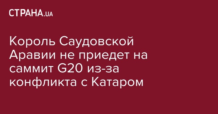Король Саудовской Аравии Салман Сауд отменил свое участие в саммите G20 в Гамбурге из-за дипломатического конфликта в регионе с Катаром. Об этом сообщило немецкое агентство dpa со ссылкой на саудовские дипломатические источники.