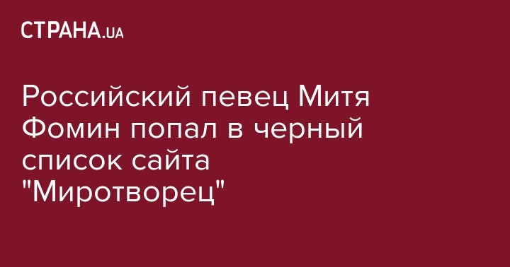 Российский певец Митя Фомин попал в черный список сайта "Миротворец"