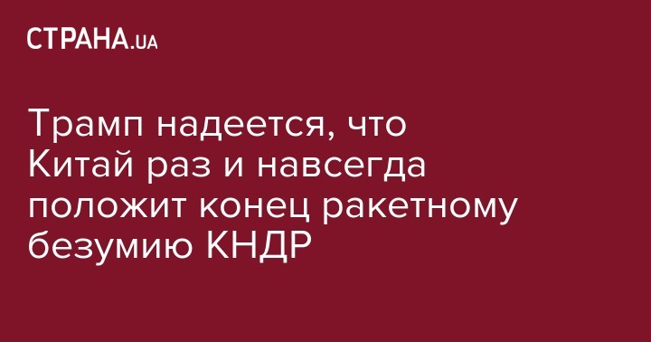 "Северная Корея только что запустила еще одну ракету. Этому парню больше нечего делать в жизни? Трудно поверить, что Южная Корея и Япония продолжат мириться с этим. Возможно, Китай предпримет жесткий шаг в отношении Северной Кореи и положит конец этому безумию раз и навсегда", - написал президент США.