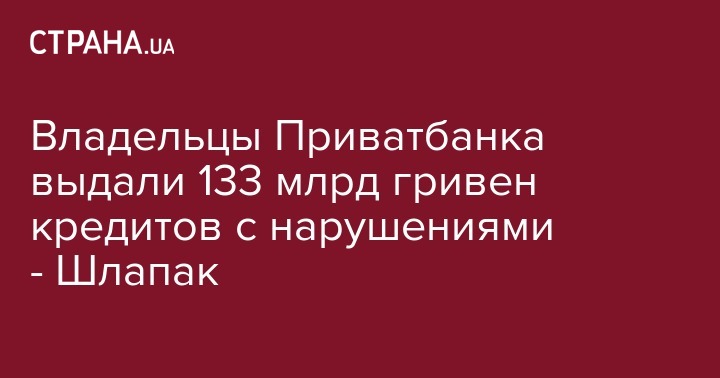 Новое руководство национализированного "Приватбанка" с помощью аудитора установило, что бывший менеджмент банка с системными нарушениями выдал займов на 133 млрд грн. Об этом сообщил глава правления финучреждения Александр Шлапак, передает "Интерфакс-Украина".