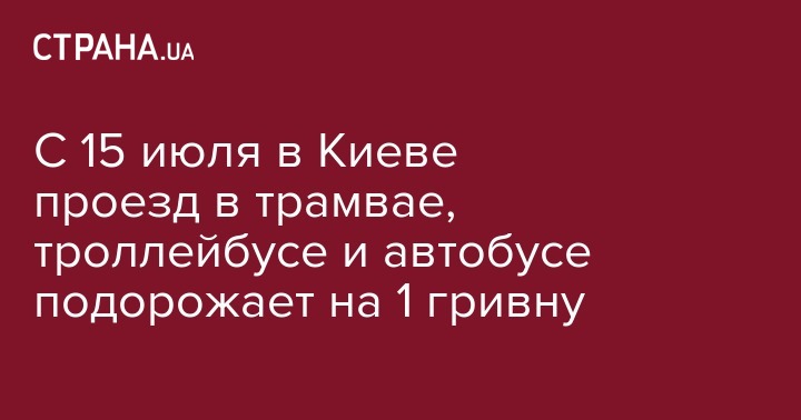 Проезд в общественном наземном транспорте Киева с 15 июля подорожает на одну гривну. Соответствующее распоряжение Киевского городского совета опубликовано в газете "Хрещатик".
