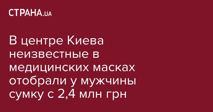 В Подольском районе Киева неизвестные в медицинских масках отобрали у мужчины сумку с 2,4 млн грн. Об этом сообщают "Стражи. Эспрессо".