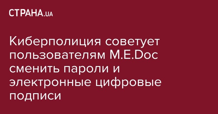 Глава МВД Арсен Аваков после того, как сообщил, что 4 июля удалось предотвратить вторую волну кибератаки, добавил, что пользователям М.Е.Doc, уязвимостью которой воспользовались хакеры, рекомендовано сменить пароли и электронные цифровые подписи. Об этом Аваков написал в Facebook.
