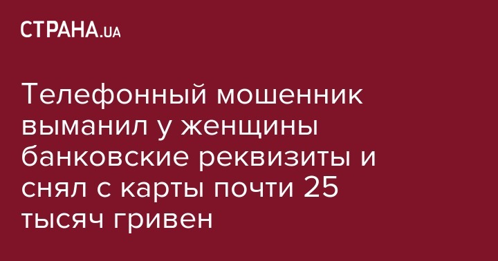 Телефонный мошенник выманил у женщины банковские реквизиты и снял с карты почти 25 тысяч гривен