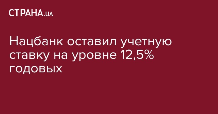Национальный банк Украины (НБУ) принял решение сохранить учетную ставку на уровне 12,5% годовых. Об этом пишет пресс-служба регулятора, ссылаясь на соответствующее решение правления НБУ от 6 июля "О размере учетной ставки" (№418-рш).