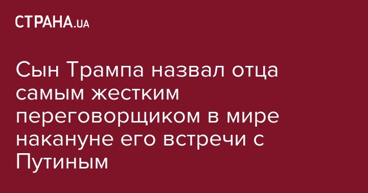 Эрик Трамп назвал своего отца Дональда Трампа самым жестким переговорщиком в мире в преддверии его встречи с президентом РФ Владимиром Путиным. Об этом он заявил в эфире телеканала Fox News.