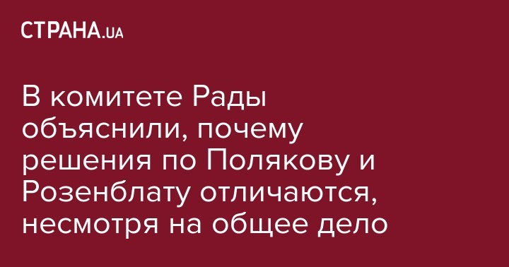 Глава регламентного комитета ВР Павел Пинзеник пояснил, почему решения относительно представлений ГПУ на на нардепов Борислава Розенблата и Максима Полякова отличаются. Об сообщает "112 Украина".