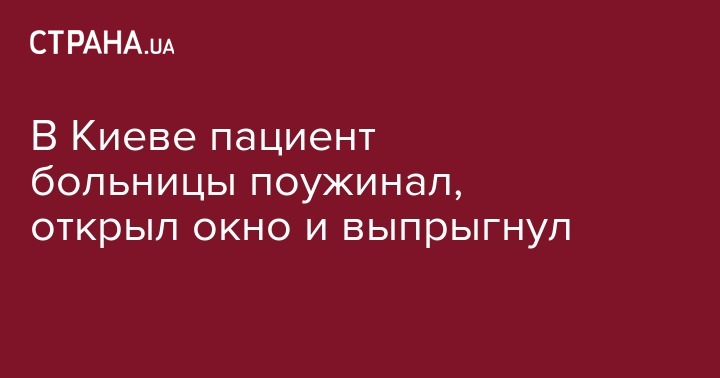 В Киевской городской клинической больницы №7 на улице Михаила Котельникова, 95, пациент открыл окно и выпал с пятого этажа и разбился насмерть. Об этом пишет "Сегодня".