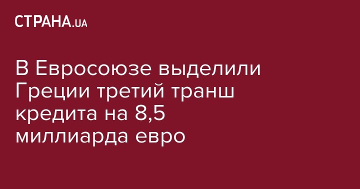 Совет директоров Европейского стабилизационного механизма (ESM) одобрил выделение Греции третьего транша кредита общей суммой в 8,5 миллиарда евро. Об этом сообщает DW.