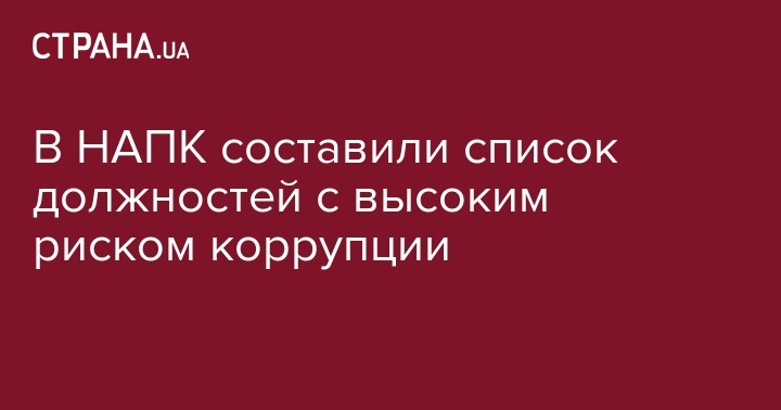 Национальное агентство по предупреждению коррупции (НАПК) утвердило перечень должностей, связанных с высоким уровнем коррупционных рисков, и перечень должностей с повышенным коррупционным риском.