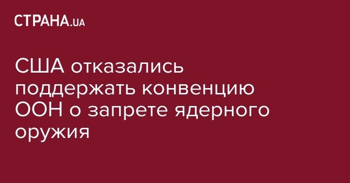 Официальный представитель Госдепартамента Хизер Науерт сообщила, что США не станут поддерживать новую конвенцию ООН о запрещении ядерного оружия. Об этом передает УНН.