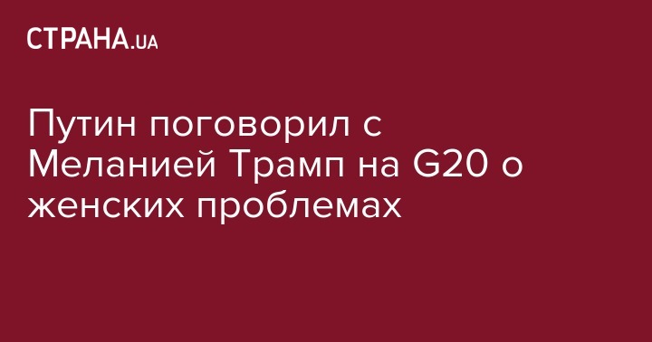 Президент России Владимир Путин в рамках G20 обсудил с первой леди США Меланией Трамп повестку саммита, связанную с проблемами женщин. Об этом сообщил пресс-секретарь российского президента Дмитрий Песков, передает "Интерфакс".