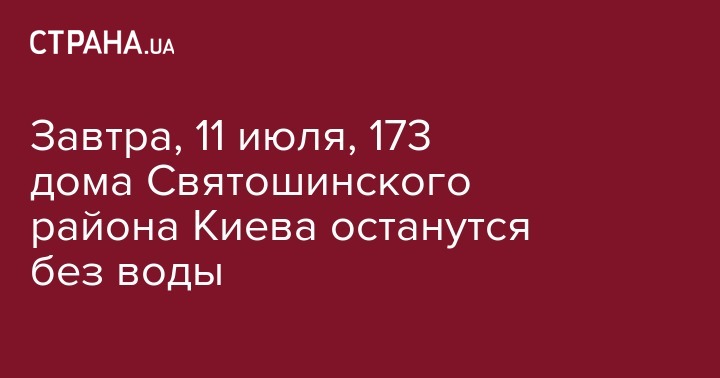 Во вторник, 11 июля, с 10.00 до 24.00 173 частных дома в Святошинском районе Киева останутся без воды. Об этом сообщает пресс-служба "Киевводоканала".