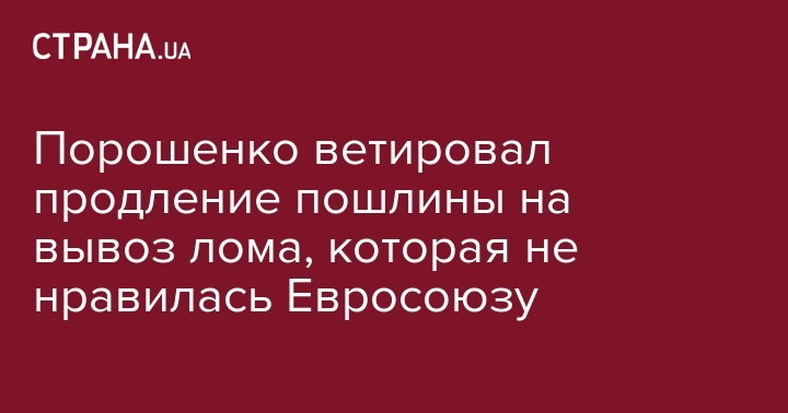 Порошенко ветировал продление пошлины на вывоз лома, которая не нравилась Евросоюзу