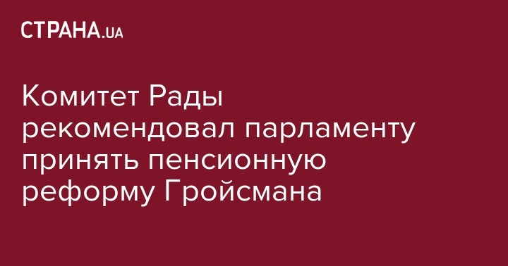 Комитет Верховной Рады по вопросам социальной политики, занятости и пенсионному обеспечению рекомендовал парламенту принять правительственный законопроект о пенсионной реформе в первом чтении. Об этом сообщает "Интерфакс-Украина".