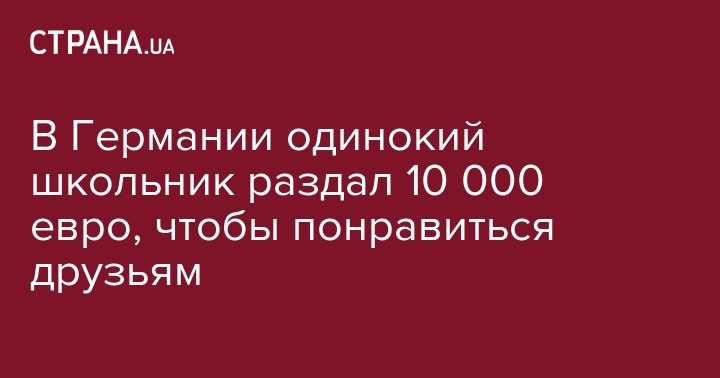 13-летний школьник из баварского города Бад-Тельц раздал своим сверстникам около 10,5 тысяч евро. Большинство "подарков", размер которых составлял от 100 до почти 2,5 тысяч евро, пришлись на знакомых мальчика из местной подростковой футбольной команды, передает Süddeutsche Zeitung.