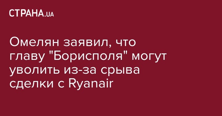 Омелян заявил, что главу "Борисполя" могут уволить из-за срыва сделки с Ryanair