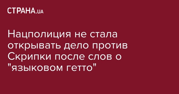 Главное следственное управление Национальной полиции отказалось открывать уголовное производство в связи с заявлениями музыканта Олега Скрипки о необходимости создания гетто для граждан Украины, неспособных выучить украинский язык. Об этом говорится в ответе Национальной полиции на запрос Украинских Новостей.