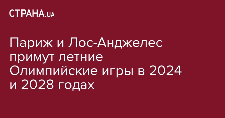 Международный олимпийский комитет (МОК) принял решение о том, что Париж и Лос-Анджелес примут летние Игры в 2024 и 2028 годах. Это решение было принято на внеочередной сессии МОК в Лозанне, сообщает RFI.