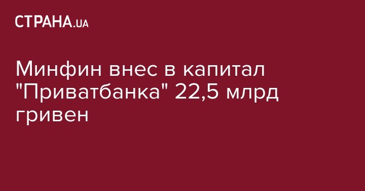Министерство финансов Украины внесло в капитал национализированного Приватбанка (Киев) облигации внутреннего государственного займа на 22,5 млрд грн. Об этом пишет агентство "Интерфакс-Украина" со ссылкой на пресс-службу Минфина.
