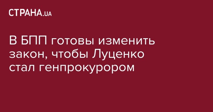 Фракция "Блок Петра Порошенко" рассматривает кандидатуру Юрия Луценко на должность генерального прокурора и уже нарабатывает изменения в закон о прокуратуре, сообщает 112 Украина.