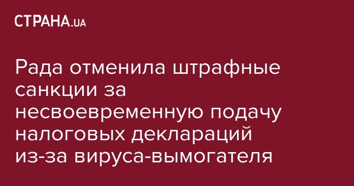 Рада отменила штрафные санкции за несвоевременную подачу налоговых деклараций из-за вируса-вымогателя