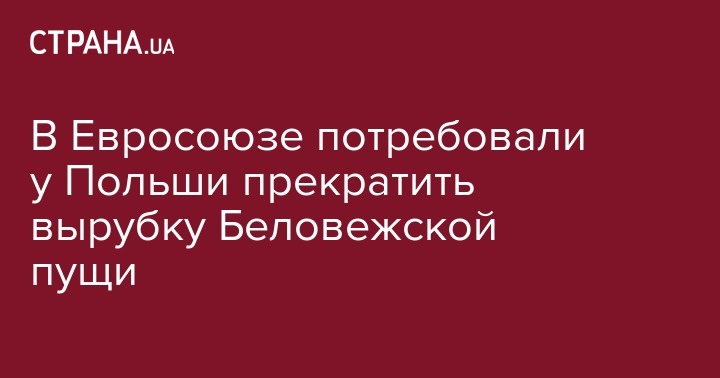 Европейская комиссия потребовала от польских властей немедленно прекратить вырубку леса в Беловежской пуще и обратилась в Евросуд с просьбой обязать Варшаву выполнить это требование. Об этом сообщает "Русская служба ВВС".