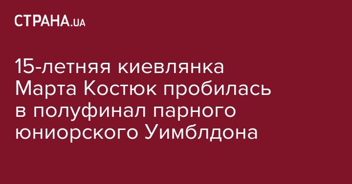 В пятницу, 14 июля 15-летняя теннисистка из Киева Марта Костюк вместе со своей напарницей - 17-летней канадкой Керсон Брэнстин пробилась в полуфинал парных соревнований юниорского Уимблдона-2017. Об этом сообщает Укринформ.