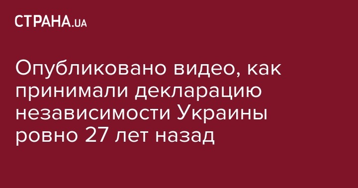 Появилось историческое видео, как принимали декларацию независимости Украины двадцать семь лет назад. Архивное видео разместил премьер-министр Украины Владимир Гройсман на своей странице в Twitter.