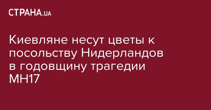 Киевляне несут цветы под посольство Нидерландов на Контрактовой площади возле Андреевского спуска в третью годовщину авиакатастрофы малайзийского Боинга МН17 на Донбассе. Об этом сообщает "112 Украина".