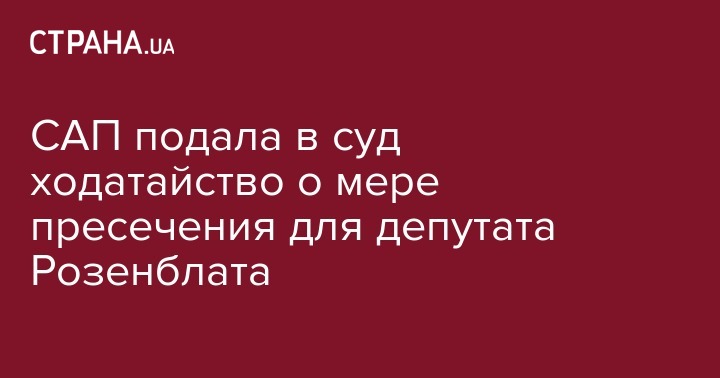 САП подала в суд ходатайство о мере пресечения для депутата Розенблата